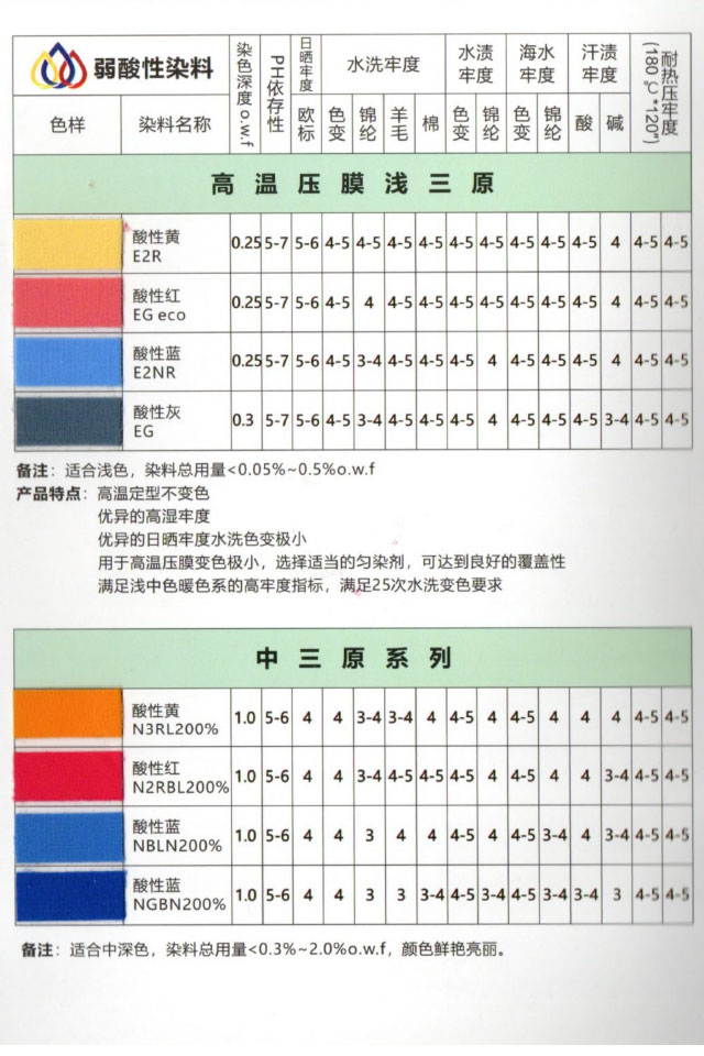 高牢度分散染料是滌綸及其混紡織物染色的重要染料類別,因其在耐光、耐洗、耐摩擦等方面的優異表現,被廣泛應用于戶外紡織品、功能性服裝及高品質家紡產品中。隨著消費者對紡織品品質要求的提升,高牢度分散染料的研究與應用持續受到行業關注。 定義與分類 高牢度分散染料是指在特定染色工藝條件下,…